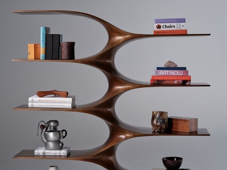 This is furniture that definitely doesn’t want to be in the background. Most shelving is built for function and blending in. This does the opposite. The shelf is the statement, and whatever you place on it becomes secondary. It’s cultural capital personified.